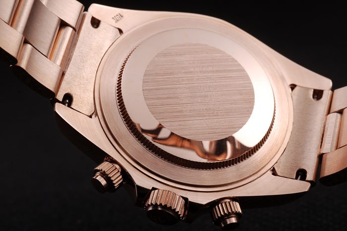 Volver: rosa de 18 quilates chapado en oro caso de empuje en la parte trasera con Rolex inscription