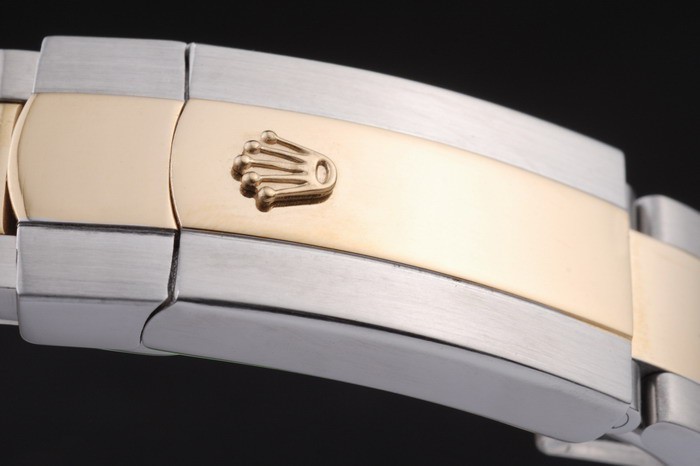Crown: acero inoxidable pulido corona de calado con el logotipo de Rolex y dos coronas adicionales a cada lado de it