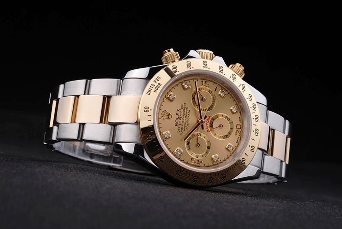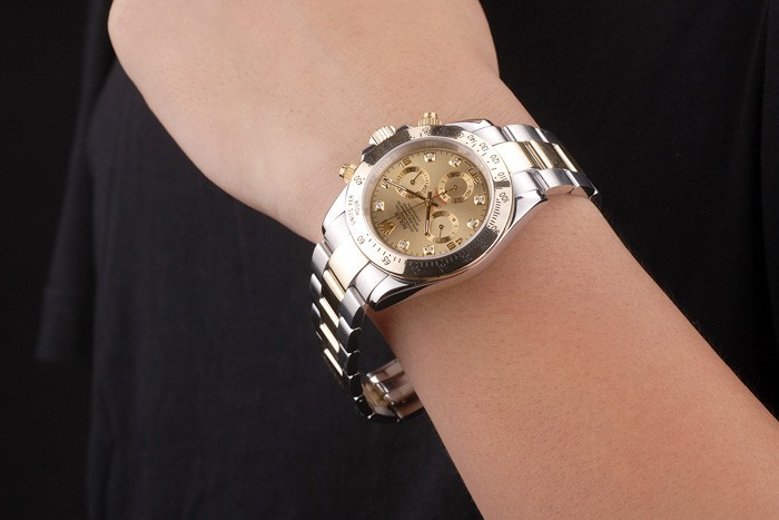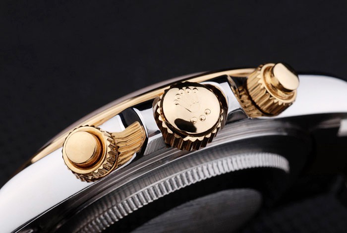 Crown: entonadas oro corona de calado con el logotipo de Rolex y dos coronas adicionales a ambos lados de it