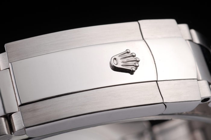 Bracelet acero inoxidable pulido brazalete de eslabones de acero inoxidable con Rolex grabado plegable en cierre desplegable que muestra la longitud Rolex logo