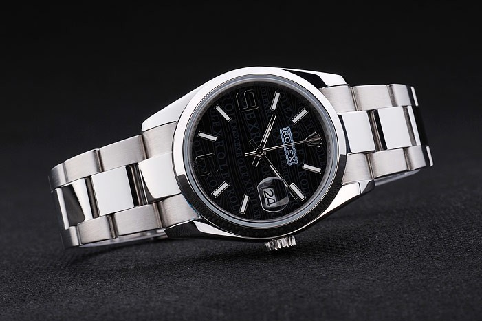 Bracelet acero inoxidable cepillado y pulido brazalete de eslabones de acero inoxidable con grabado Rolex doblar por la hebilla mostrando la longitud Rolex logo