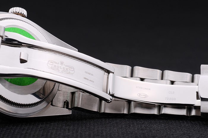 Volver: Acero inoxidable empuje en caso de vuelta con el verde de Rolex grabado stamp