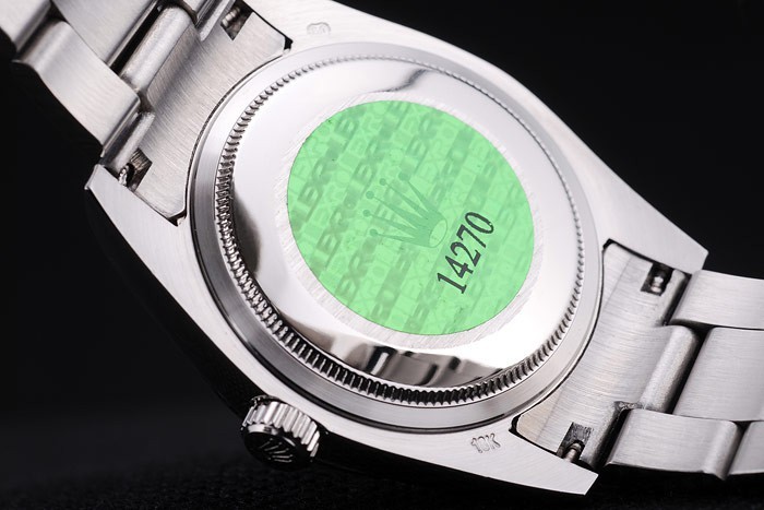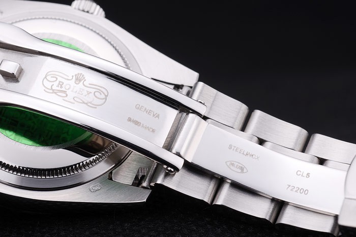 Volver: Acero inoxidable complemento de vuelta con verde Rolex stamp