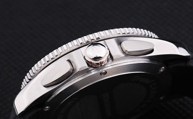 Crown: pulido corona calado de acero inoxidable con logo TAG Heuer más dos coronas adicionales a cada lado y una en el Espesor superior opuesta corner