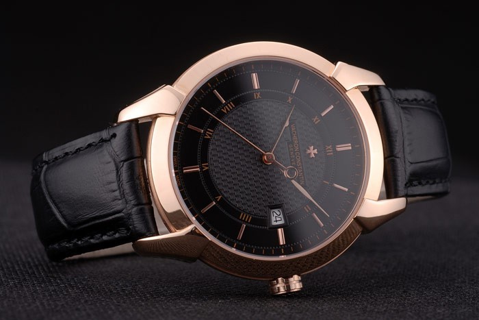 Bracelet: Calor en relieve Vacheron Constantin y correa de piel de cocodrilo negro con logotipo de 18k Rose- chapado en oro logotipo de gancho hebilla clasp