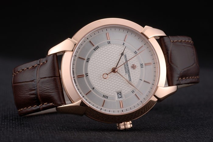 Bracelet: Calor en relieve logotipo de Vacheron Constantin y correa de piel de cocodrilo marrón con 18k Rose- chapado en oro logotipo de gancho hebilla clasp