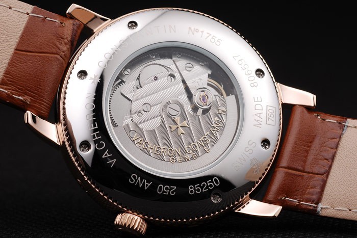 Crown: rosa de 18 quilates chapado en oro de la corona calado con el logotipo de Vacheron Constantin